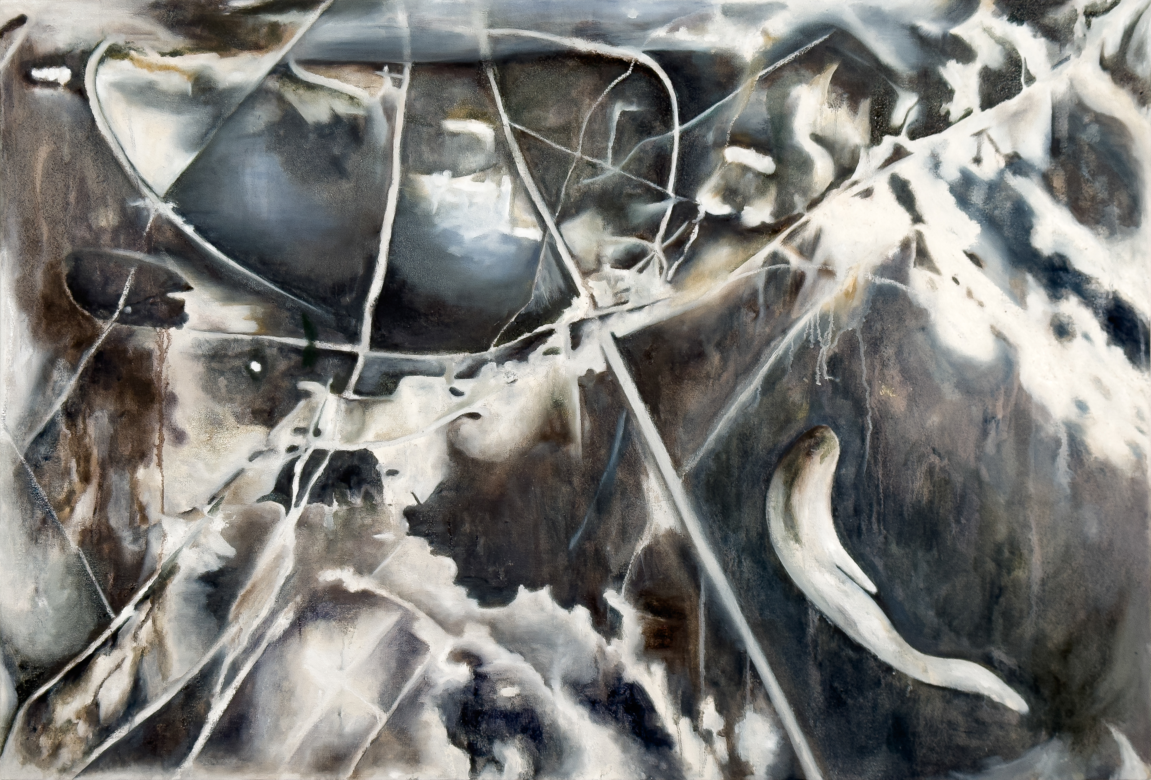 Oil and oil pastels, pigments on canvas
